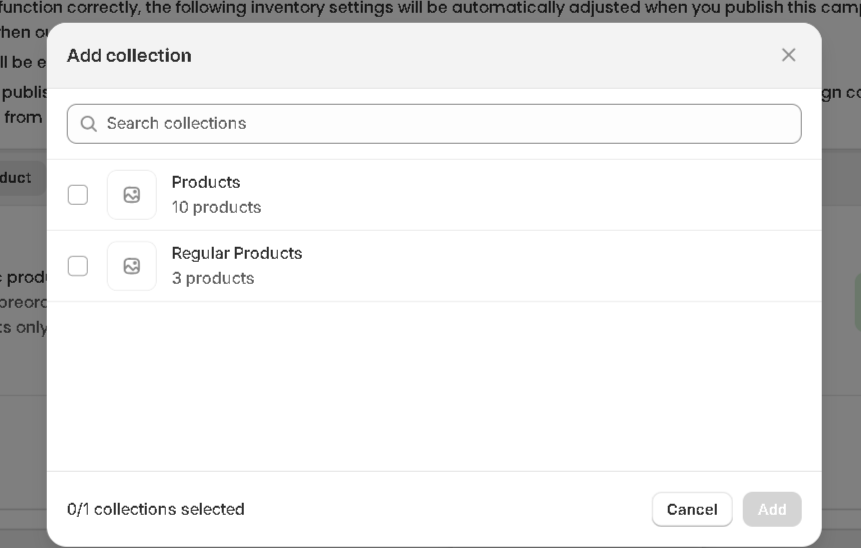 2. Specific collection: Allow preorders for all products within a specific condition.