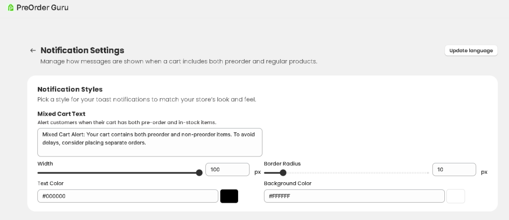 When a customer adds both pre-order and regular items to their cart, a notification will appear to inform them before checkout.