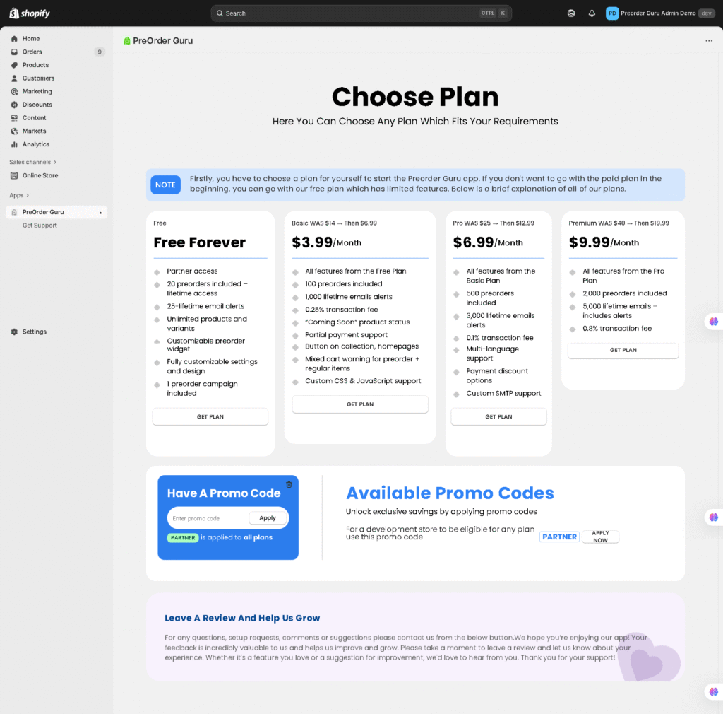 đ Special Partner Offer: Running a development store? Use code PARTNER to access all PreOrder Guru plans during setup.