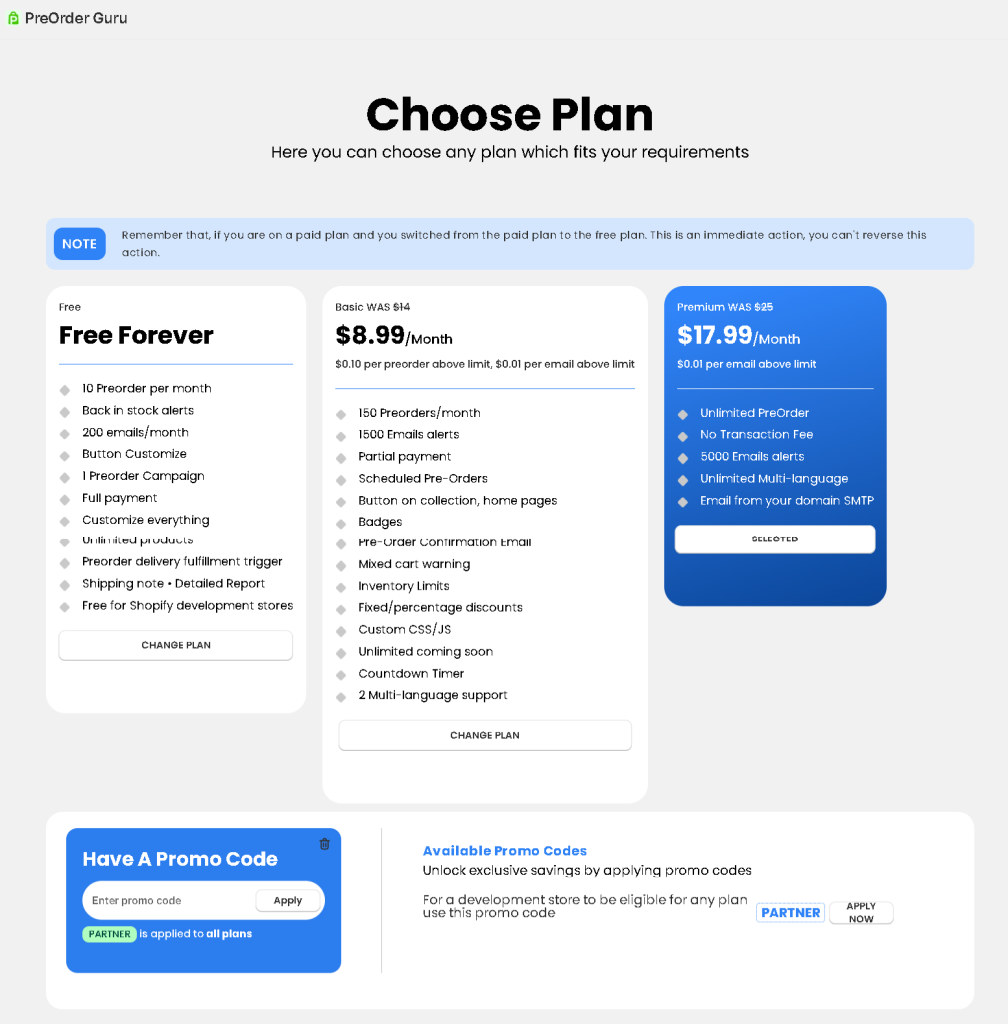 🎁 Special Partner Offer: Running a development store? Use code PARTNER to access all PreOrder Guru plans during setup.