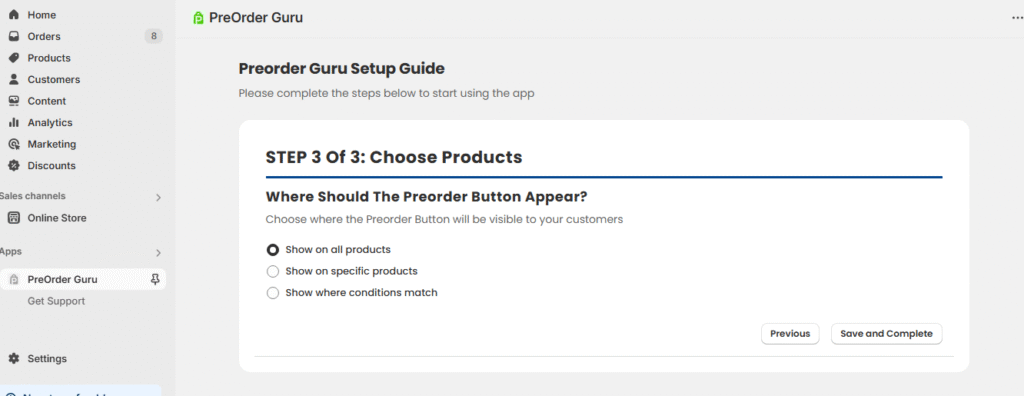 Step 3 : Choose products and specify where the Preorder Button should appear.